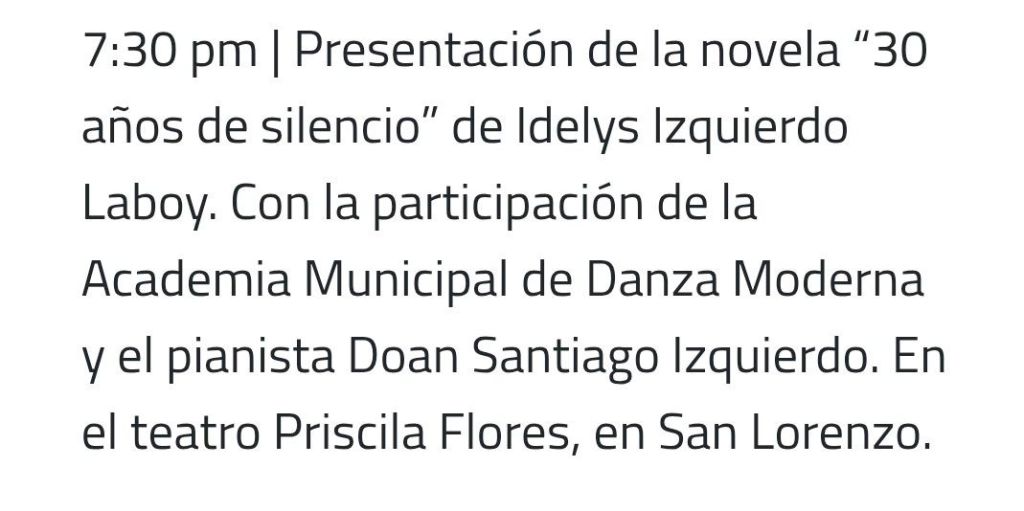 La autora puertorriqueña Idelys Izquierdo Laboy ha publicado su más reciente libro, 30 años de silencio, una historia con estilo novelesco que narra las vivencias dolorosas que, desde niña, sufrió la protagonista de la historia y que ofrece herramientas de ayuda para personas que puedan estar pasando por situaciones similares.
