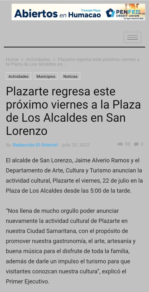Plazarte regresa este próximo viernes a la Plaza de Los Alcaldes en San Lorenzo – Periódico El Oriental https://share.google/Nl8OWrfC60ALoPz4M