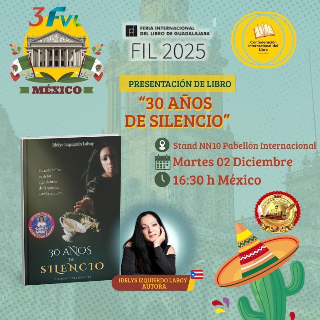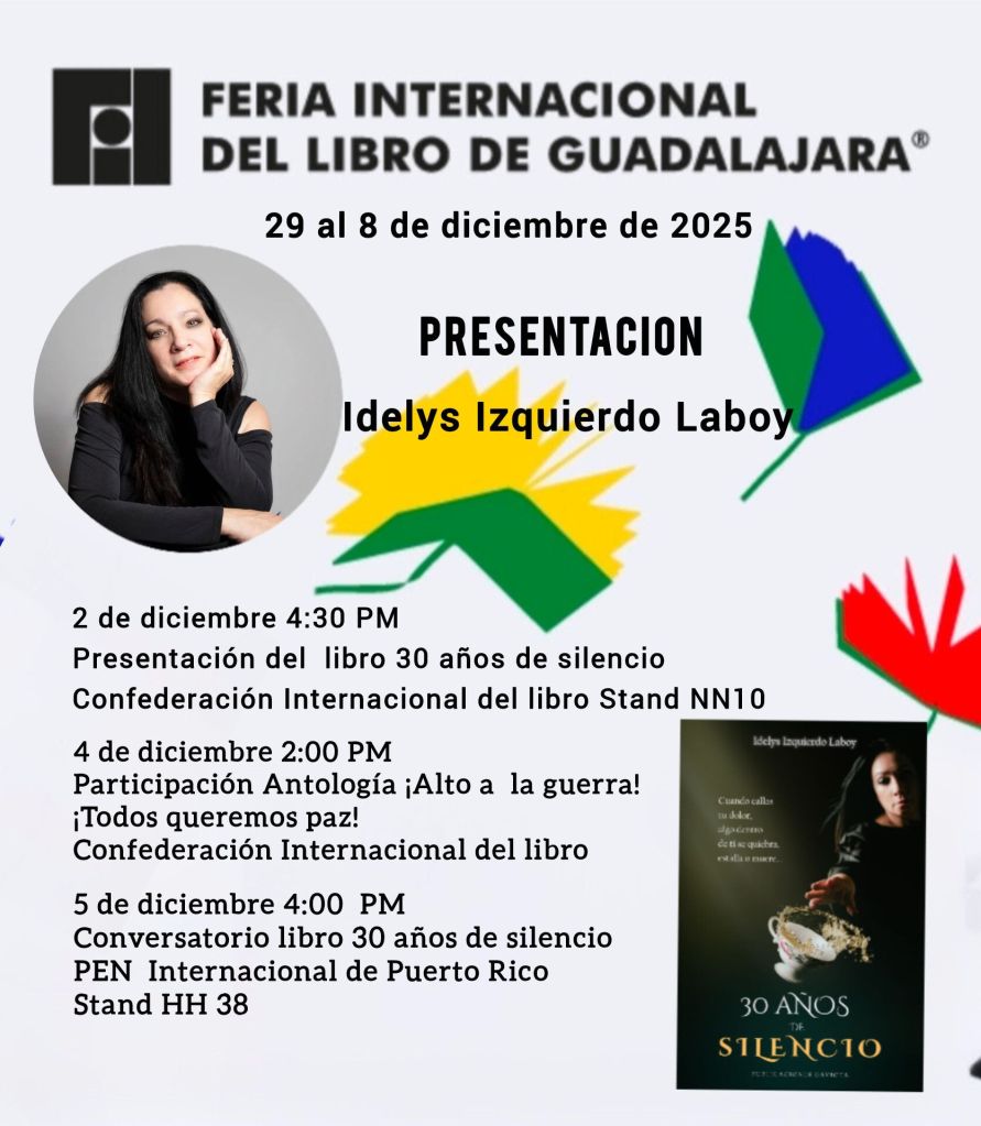 El martes 02 de diciembre tuve el privilegio de entrevistar a IDELYS IZQUIERDO en la FIL Guadalajara 2025. Nació en New York, de ascendencia puertorriqueña, escritora, artista y maestra que ha dedicado su vida a crear mundos donde la palabra, la música y las artes plásticas se entrelazan.